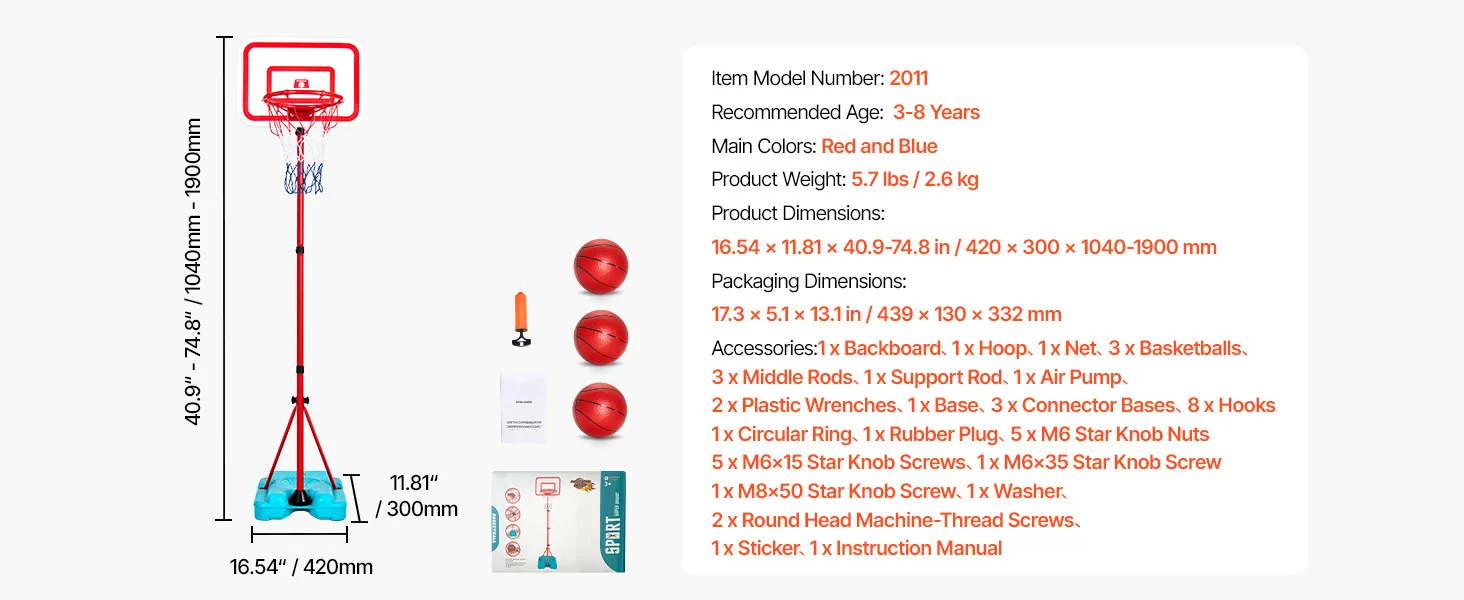 Fácil de montar: la cancha de baloncesto para niños incluye 3 pelotas de baloncesto, 1 tablero, 1 aro, 1 red, 1 base y todos los accesorios y herramientas necesarios para el montaje.Se incluyen instrucciones claras, lo que hace que el montaje y desmontaje sean rápidos y sencillos.